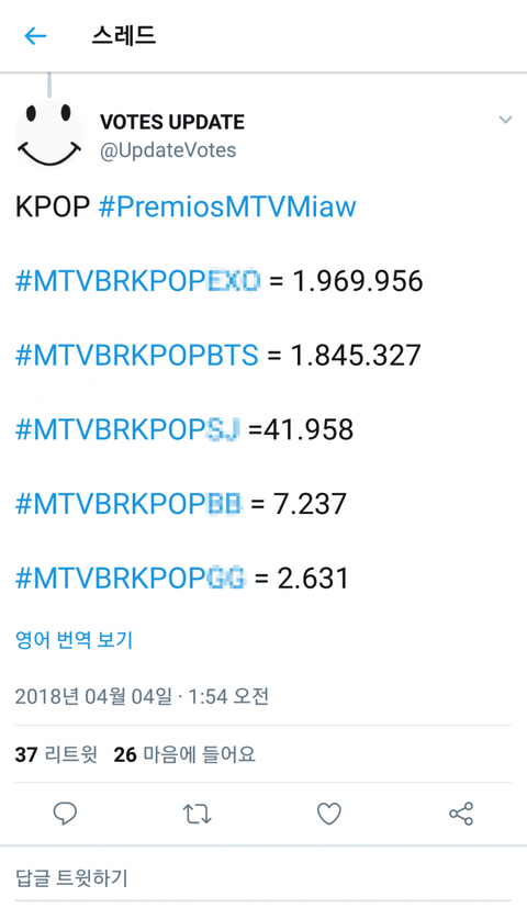 케이팝 부문은 2위고 ㅇㅇ 그래도 후보에 올랐는데