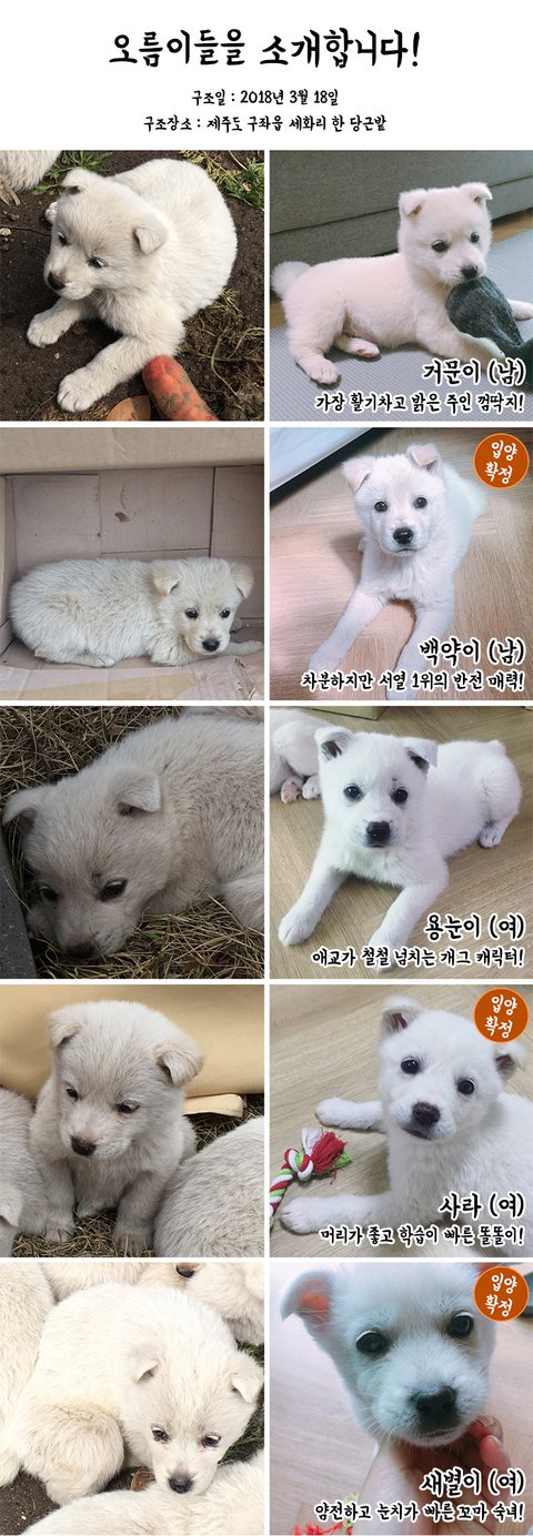 지난 번 네이트판에서 톡커들의 선택에 선정된 이후 저의 인스타그램을 통해 많은 문의가 들어왔고그 결과 둘째 백약이와 막내 새별이가 각각 서울과 인천으로 입양을 가게 되었어요~!