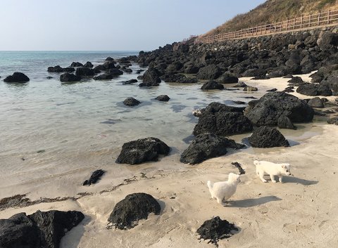 바다로 산책도 나간답니다!