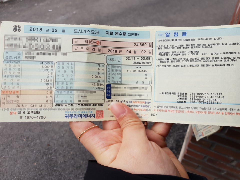 정말 터무니없는 금액에 경악을 금치못했습니다. 고작 한달밖에 사용하지 않았는데 불구하고 82,970원이라는 돈이나왔다는 것이였습니다. 저는 도시가스 기본료가 어느정도 나오는지 그때는 몰랐기 때문에 하메님에게 1/n을 드렸습니다. 이일있고 한달 후 였습니다.