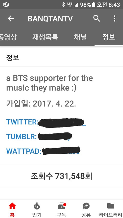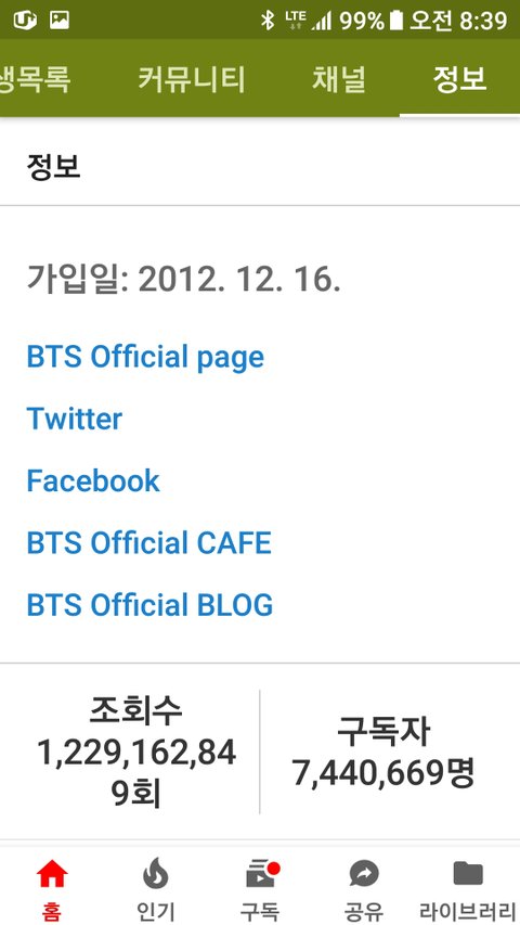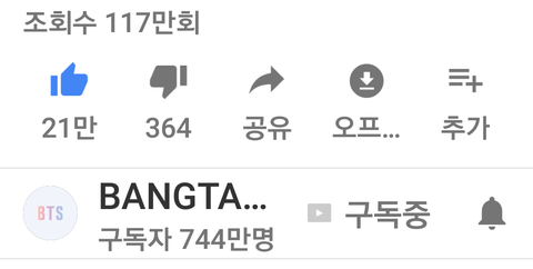 방탄 공계는 이렇게 구독자수가 노출되고