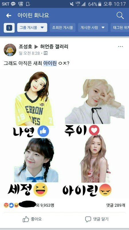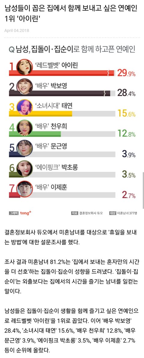 여덕 많은걸 향기 없는 꽃이라고 염불 외우는 것도 지긋지긋^^ 그래봤자 남자 수험생들이 응원받고 싶은 여자연예인 1위, 화이트데이에 고백하고 싶은 스타 1위, 갤럽도 남성 선호도 ㄹㅇ높은데 짤은 아이린 생파 짤