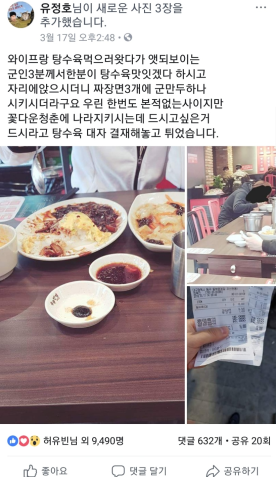 최근 탕수육 먹고싶다고하고는 군만두시켜드셨던 군인 분께