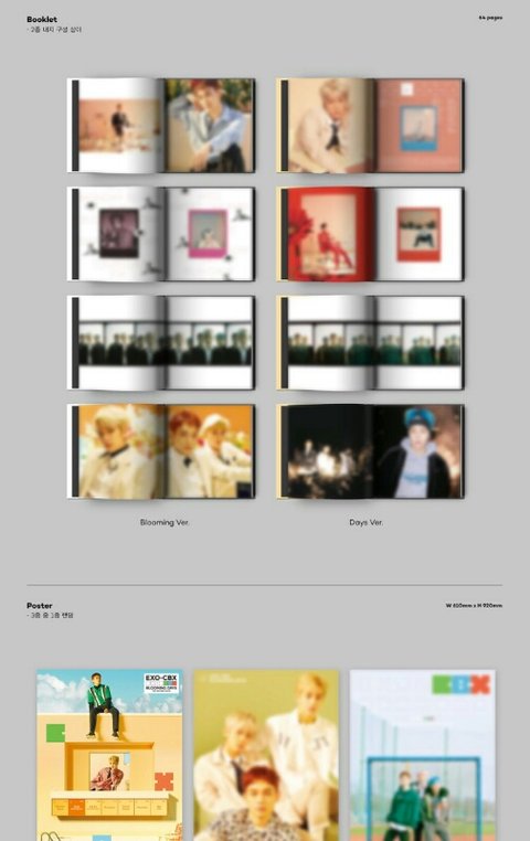 첸백시 앨범 사양 앨범자켓 : 2종 포스터 : 3종중 랜덤1종 엽서 : 초도한정 3종중 랜덤1종 스티커 : 1장 포토카드 : 12종중 랜덤1종