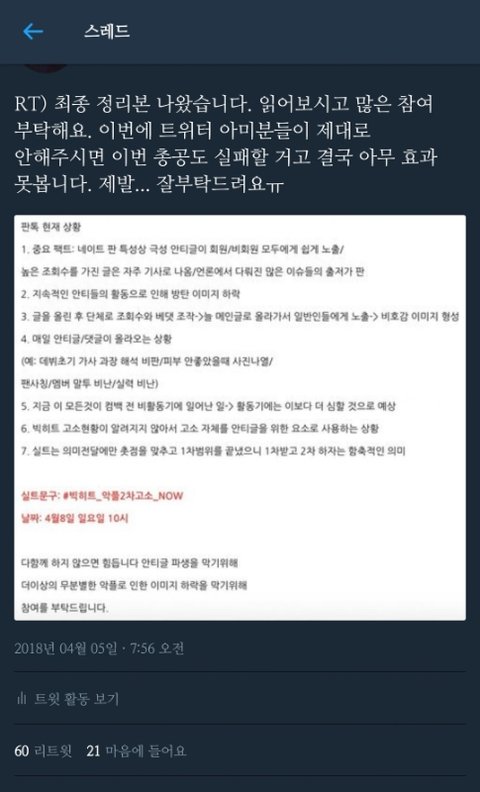 지금 학교에 있을 시간이라 좀 느린데 밤되면 쫙 퍼질듯. 회의 확정 되기전에 내가 예비차원에서 올렸을땐 알티 400까지 갔는데 수정해야할 부분들도 좀 있어서 그냥 튓 삭하고 짤찐걸로 새로올렸어. 돕기로한 외랑둥한테도 알렸어. 퍼지는중이니까 더이상 수정은 없었으면 해 ㄹㅇ루다가 힘듦