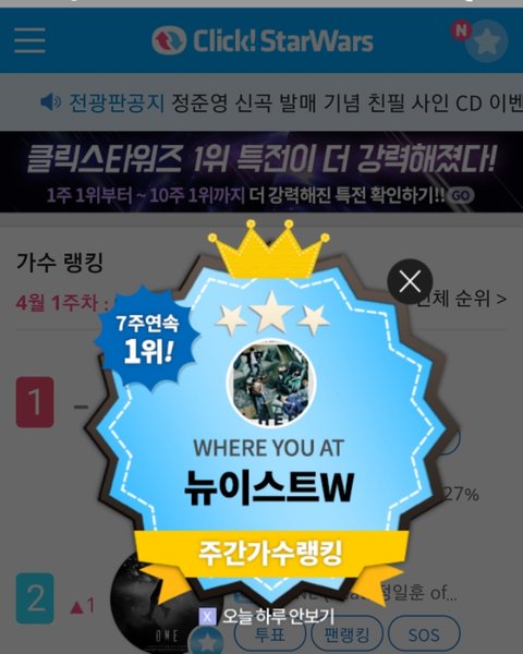 클릭별 들어갔더니 1위라 음 뿌듯 이러고있는뎅