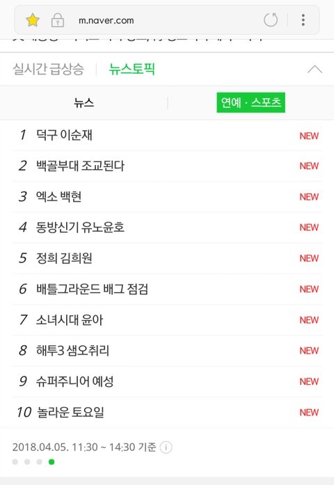 백현이 뜬금 실검? 핫토픽이라 놀랬네