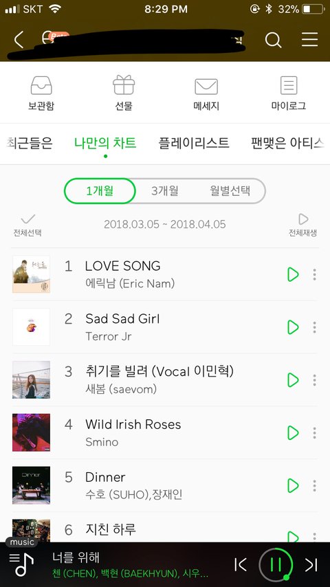 요즘 완전 빠져(?)있어ㅠㅠㅠ 평소에 장재인 음색 좋아하는뎅 수호님이랑 완전 잘 어울리시눈거 같다 진심 ㅠㅠ 마침 너를위해 듣고있어서 갑자기 생각나서 글 적어봐!! 이번에 컴백한다던데 대박 터지길바랄게~~~~ 맞다!! 오늘 이불 밖은 위험해 그것도 내가 관심있어하는 아티스트랑 배우 나와서 보려고 하눈데 시우민님도 나오더라 ㅋㅋㅋㅋ 이러다 입덕하면 어쩌징... ㅋㅋㅋ 아무튼 하이띵해 사진은 그거 머글인증??!! 다 하는거 같길래 나두 ㅋㅋㅋㅋㅋ