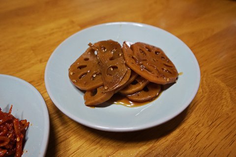 사진은 연근조림이지만 장조림, 진미채, 멸치볶음이 주로 있고