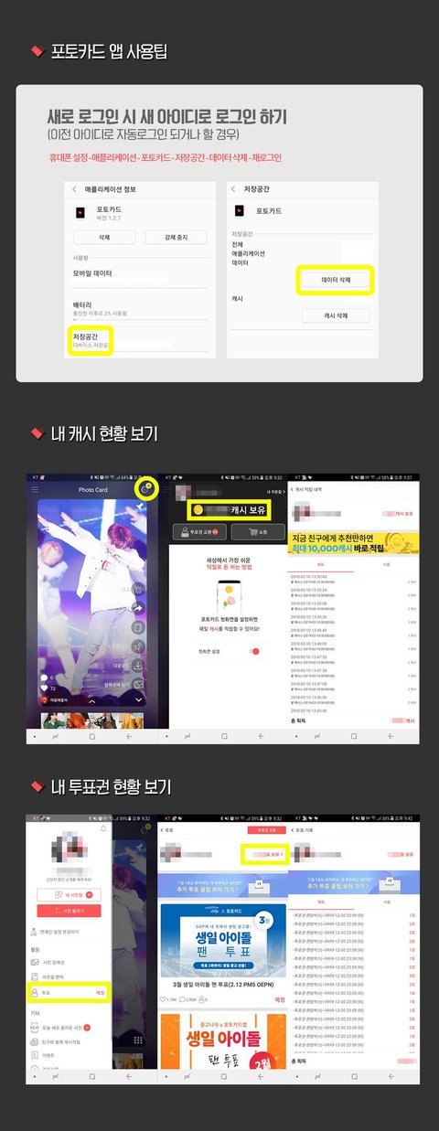 어플여러개 설치하기가 힘든 폰은 기존에 깔린 포토카드 어플 설정에서 앱 데이터삭제를 하면 재로그인 할 수 있습니다.