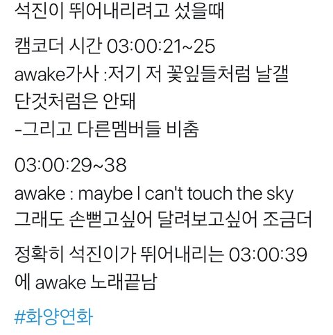 석진이 바다장면 awake가사ㅜㅜ