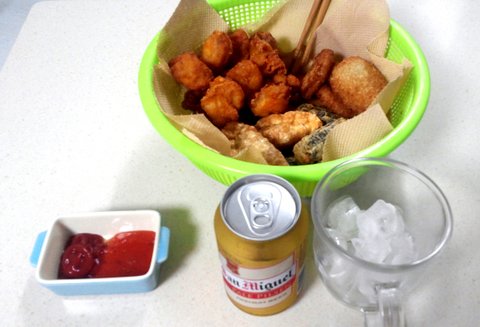 그리고 가라야게, 김말이튀김, 고로케, 만두를 사서 튀겼습니다.