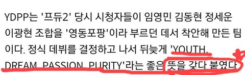 어라 근데 그룹명이 ydpp? 설마 뜻이 영동포팡?? 했는데 ㅋㅋㅋ 아님...