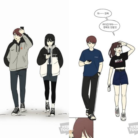 자림이랑 우리랑 다리라인도 똑같고 걸음걸이도 똑같지만 자세는 정반대임 경우는 자림이를 우리는 경우를 좋아하지만 그걸 감춘다는뜻으로 상대를 쳐다보지않고 반대쪽을 보고있지만 옆에있는 짝사랑 상대는 관심도 없다는 뜻으로 폰만 하고있는듯