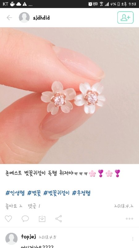 이 벚꽂ㅈ모양 귀걸이 어디서파는지 아는삿남