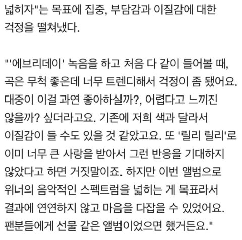 대중에게 많은 인기를 얻지 못하더라도 위너의 도전은 그 자체로 큰 의미라고 생각하고 사실 난 이번 노래가 너무 좋다......