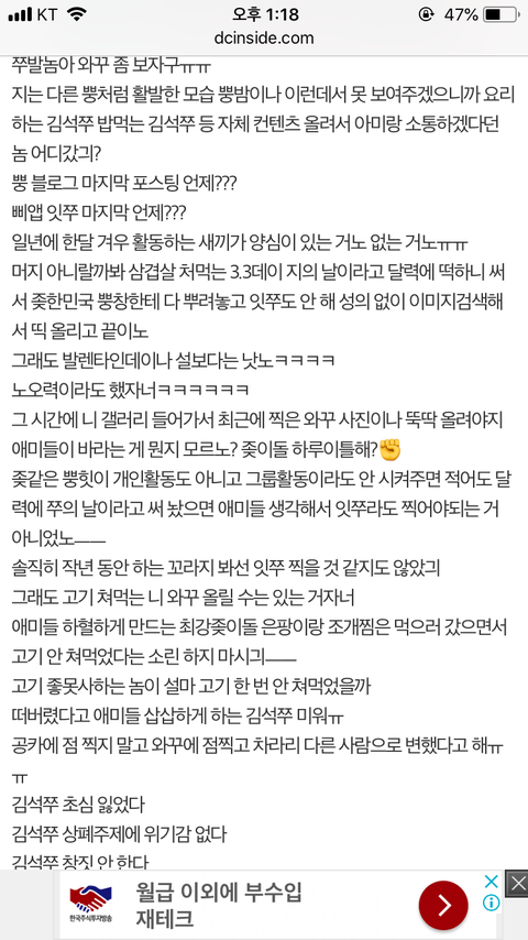 이런 글 바로 떠있어 이거 정화해야 하지 않을까 ㅜㅜㅠ??