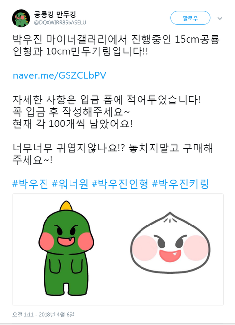 저번주부터 판매하기 시작한 공룡깅인형이랑 만두깅인형 아직 수량 많이 남았으니까