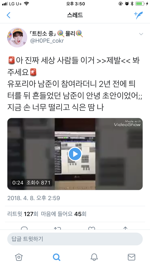 유포리아가 몇년전 팬들을 뒤집어놨던 남준이 안녕 초안이었다.