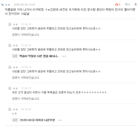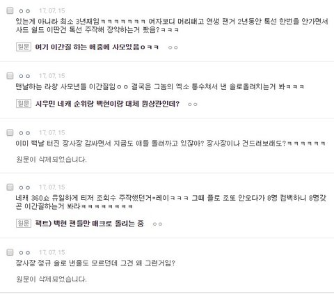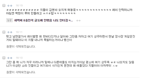 __ 개__ 날짜도 __스럽게 애들 데뷔기념일 __ 애들 그렇게 패놓고 레이 백날천날 묻힌거 그거 하나 베톡가는건 두려워서 저렇게 그것만 지운거 너무나도 개__같은데