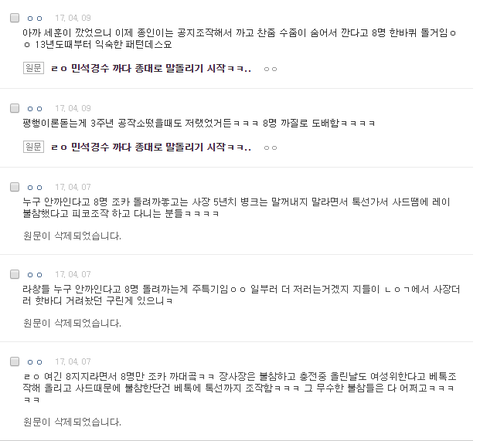 사장글 도배된 상황에도 그런글 없다고 우기며 8명(이날은 준면이였음) 까질 시작함