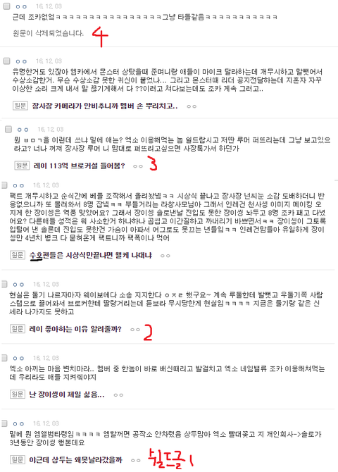 밑에가 작년 5주년날ㅋㅋㅋㅋ 레이 병크 칠때마다 8명 루머 올리고 누구줌 거리며 패서 묻는 패턴도 똑같고, 애들 까는 글만 남고 레이 팩폭한 댓 단 글들만 지워지는것도 똑같음ㅋㅋ