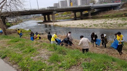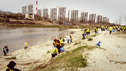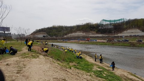 평소에 중랑천에 운동하러 와 보면 온갖 쓰레기들이 많았었는데, 많은 분들이 쓰레기를 줍고 청소를 하고 있었다.