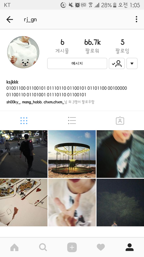 rj_gn (석진) 계정에 올라온 모스부호들