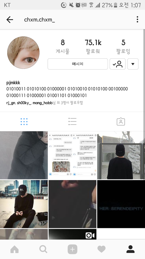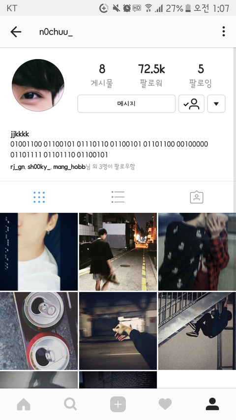 n0chuu_ (정국) 계정에 올라온 모스부호들