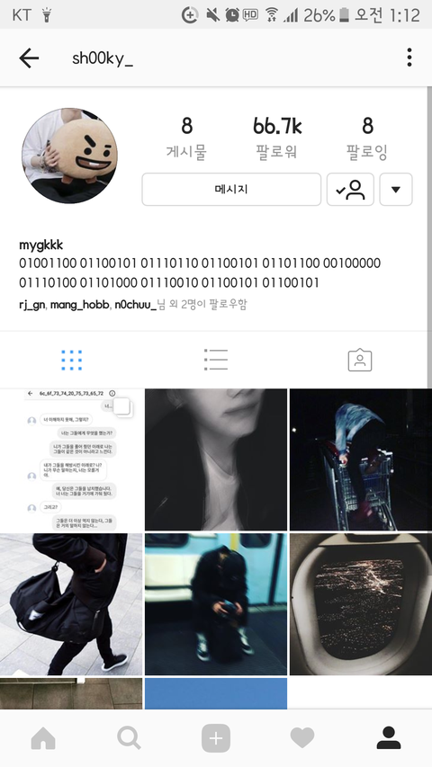 sh00ky_ (윤기) 계정에 올라온 모스부호들