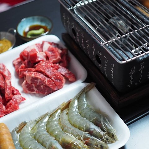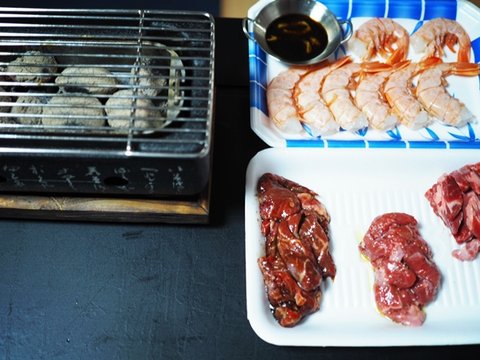 이렇게 처음 사용해본결과, 익는속도가 좀 느리고 기름이 떻어지거나 하면 숯에서 연기가 나서 환기는 필수입니다. 날씨가 따뜻한날 먹어서 다행이었지, 추웠으면 고생했을뻔ㅋㅋ