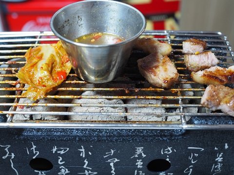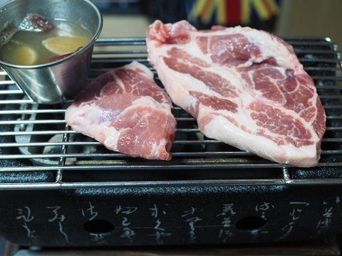 ↑ 지난번보다 숯이 좀 하얗죠?? 이게 나름 팁입니다. 숯이 생각보다 엄청 오래가서 불붙이고 10분 20분 있다가 바로 올리는거보다, 넉넉~하게 여유를 가지고 30분 40분정도 기다렸다가 먹는걸 추천합니다. 스텐망도 올려놓으면 충분히 예열할수 있어서 좋습니다. 저렇게 대부분이 하얗에 된다음에 구워도 열기가 한참을 가서 먹고도 충분합니다. 연기가 훨씬 덜나구요. 그래도 덜어지는 돼지기름 앞에선 소용없지만...
