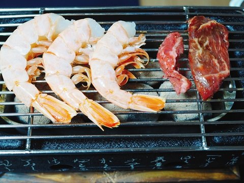 ↑ 이새우는 익으면 껍질이 빨개지는게 아니라 하얘지더군요, 이쯤되니 새우에 특화된 화로일지도 모른다는 생각이.....ㅋㅋㅋ 암튼 세번째도 무사히 잘 먹었습니다.