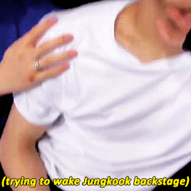 프로그램에서 정국이 깨울 때 어떻게 깨우냐고 물어보고 시뮬레이션 해보라고 해서 저런 거야 ㅋㅌㅌㅋㅌㅋㅋ; 정국이가 잘 안 깨는 타입이라 꼬집어야 깬대 뭐 어쩌라공