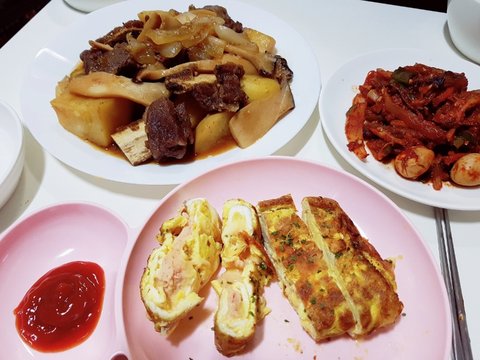 무려....한우로 만든 소갈비찜과 명란치즈계란말이에요.