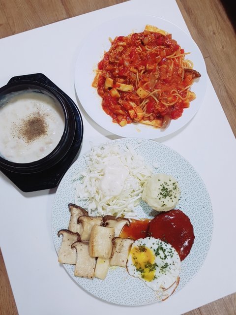 오랜만에 양식. 토끼*에서 함박스테이크 정식먹고 만들었는데 그맛은 아니었구요ㅠ.ㅠ ㅋㅋㅋㅋ