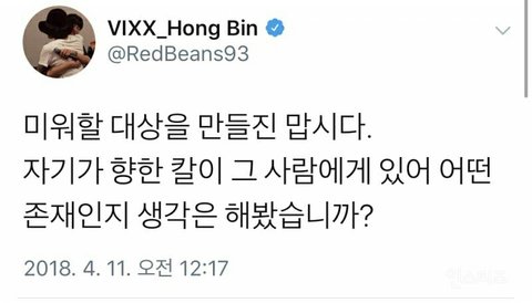 얘 정치질 소름이네 ㅋㅋㅋㅋㅋㅋㅋㅋㅋㅋㅋㅋㅋㅋㅋㅋㅋㅋㅋㅋㅋㅋㅋㅋㅋㅋㅋㅋㅋㅋ 차학연 악개들이 차학연 빅스탈퇴하고 솔로 하라고 염불하던 년들인데 이렇게 피코질하는거 보면 넘 웃김 ㅋㅋㅋㅋ 이홍빈은 잘 몰라서 저런트윗을 올린거야 .........