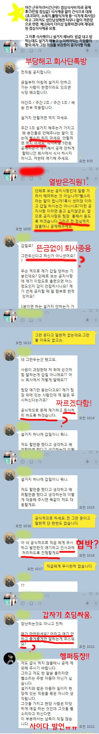 전직원이 보는 단톡방에 카톡내용을 보고 경악했어요.