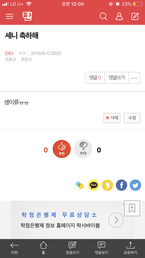 카카오스토리 보내기