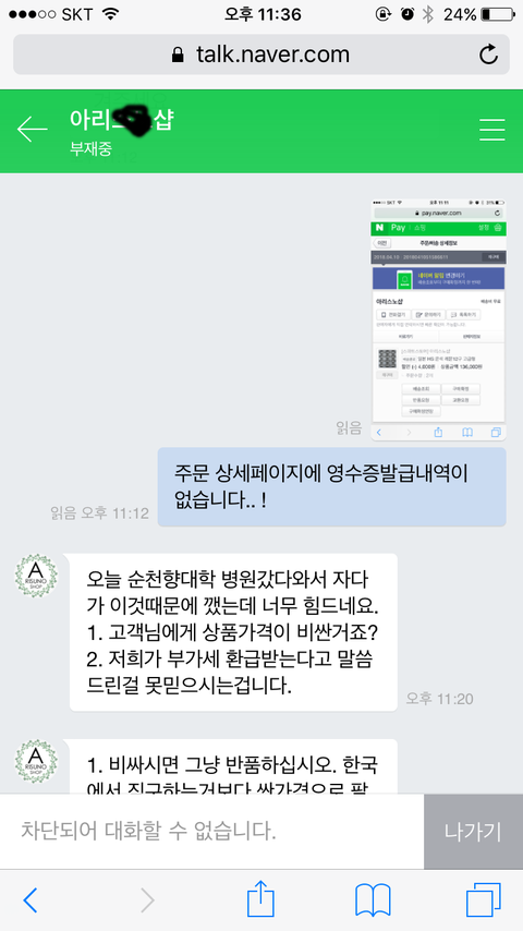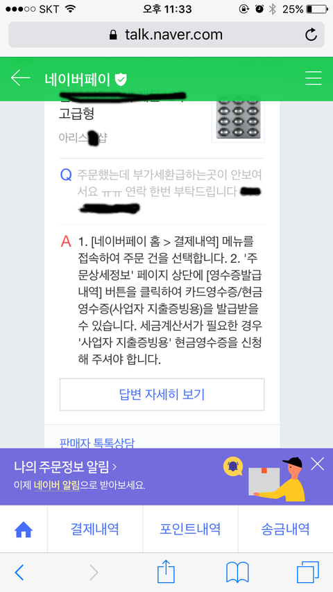 영수증발급내역 클릭하는곳이 아무리봐도 없길래