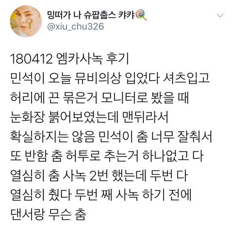 시우민 엠카 사녹후기 모음