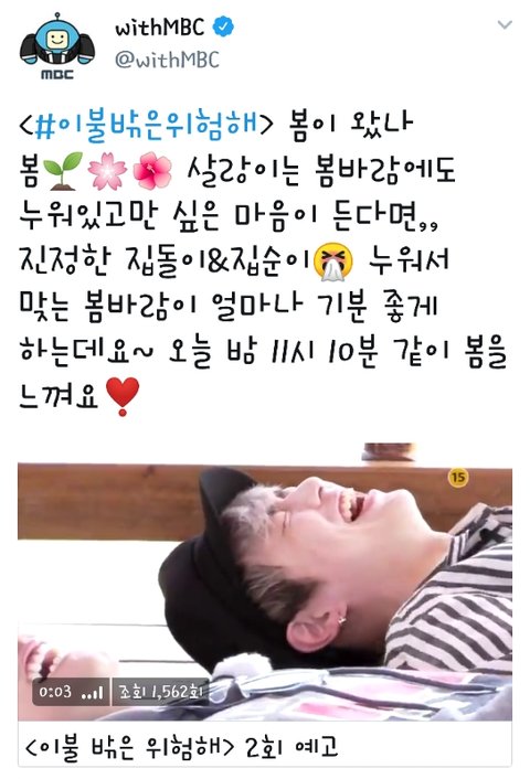 위드엠비씨 짹에 이불밖은위험해 예고떴오