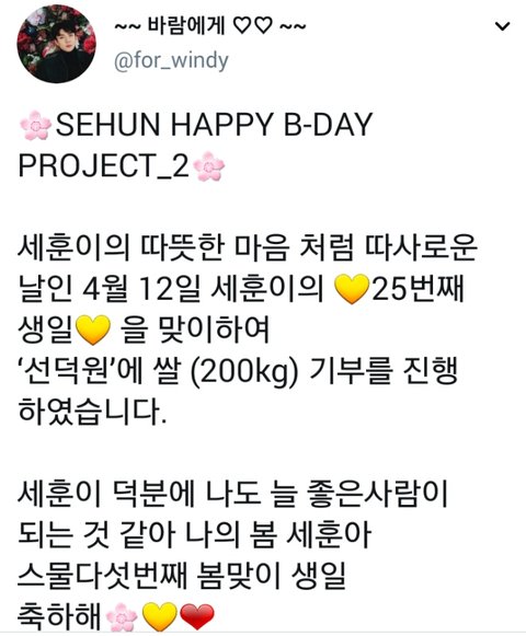 <<세훈이편 기부 소식>>