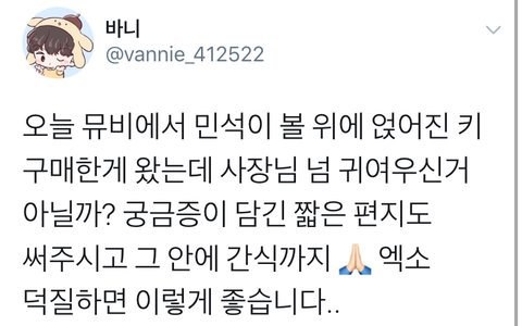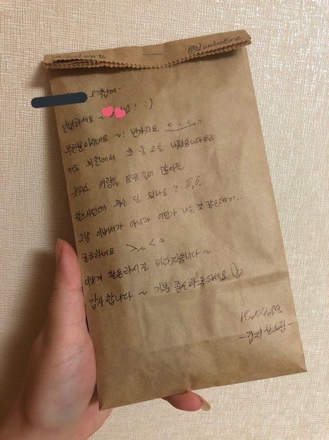 시우민 잠옷회사 사장님 편지에 이어 이번에는 키회사 사장님까지 정성스러운 편지를!! 그것도 간식까지ㅠㅠㅠ