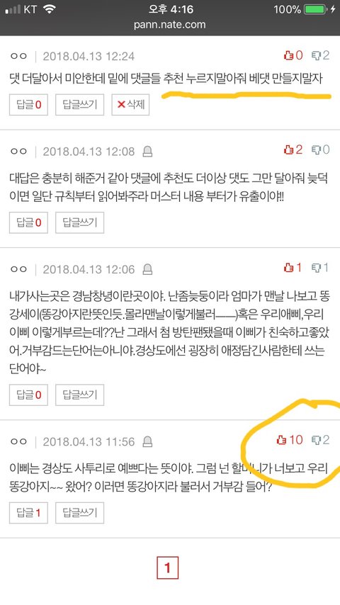 ‘밑글 여기서 봐’ 등 이삐들이 올린 글에는 차라리 동의한다고 답댓을 달아 (어그로가 올린 글에는 무조건 반응 X)