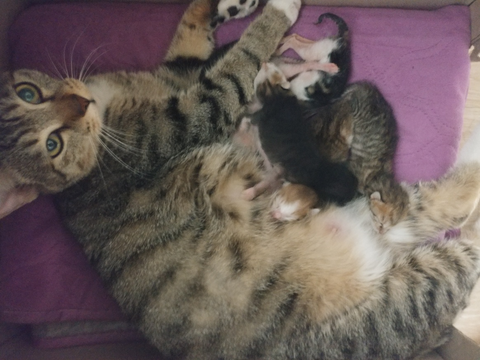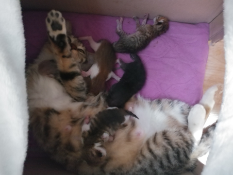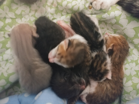 아깽이들..너무귀여운듯.. 6마리를..낳았는데.. 후...2마리는 죽었다는.. 엄마만..캐어하면될줄알았는데.. 아깽이들도 내가 캐어해야된다는걸..다시알았네.. 젖싸움에서 밀린애들은 삐쩍말라있더라..