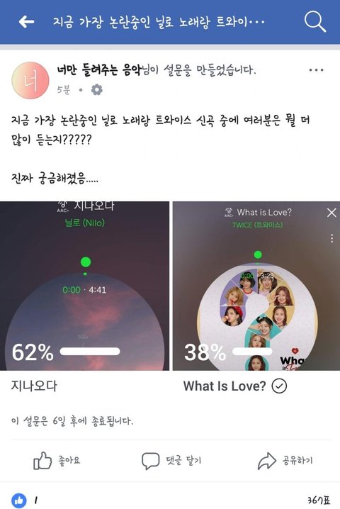 이 글에서도 역시 아이돌vs닐로 대결 붙여서