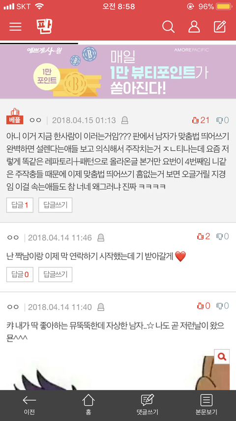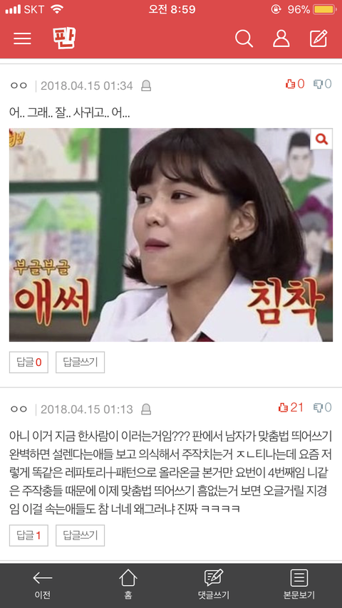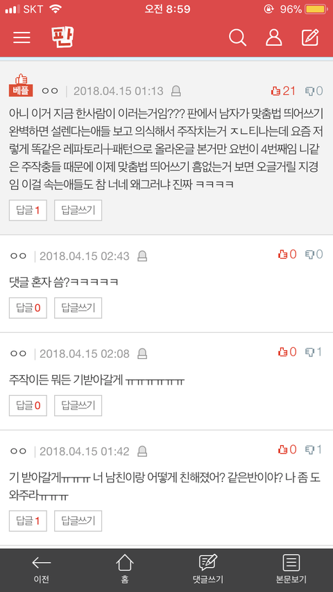 추가) 기분 좀 별로다,, 그냥 쟤랑 나 둘 다 맞춤법 앵간하게 잘 지키는 건데 그걸 왜 내가 의식해서 주작한 거라고 해? 생각이 좀 꼬인 거 아냐? 시험 공부 할 시간도 아까운데 그 시간에 주작이나 하고 앉아 있다고? 나는 그냥 고백 받은 거 너무 설레서 올린건데 너네가 주작이네 뭐네 하니까 기분이 좀 상했어,, 뭐 근데 너네가 그렇게 생각하고 말 해도 큰 타격은 없어 너네가 그러던 말던 난 남친이랑 잘 사귈 거고 행복하게 살고 있을거니까 ㅎㅎ