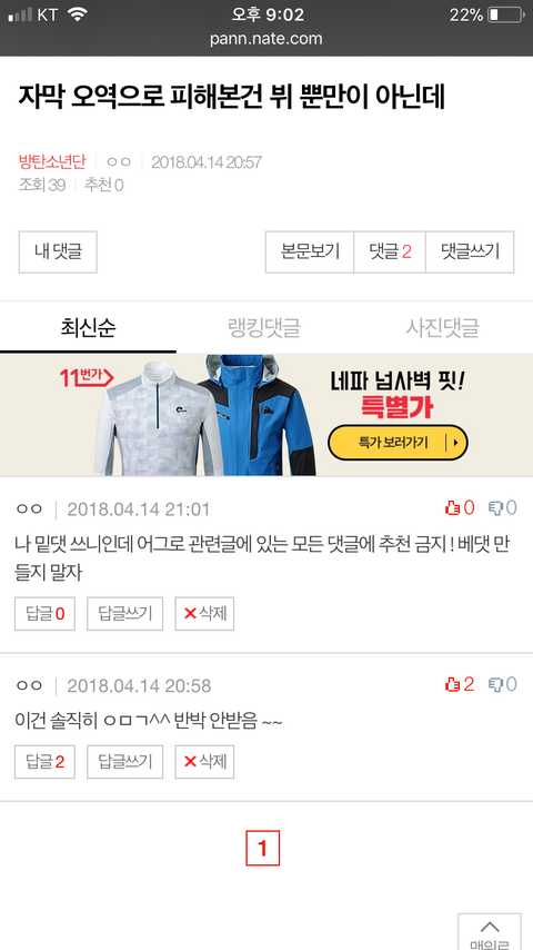 어그로 관련 글에 있는 모든 댓글에 추천 금지