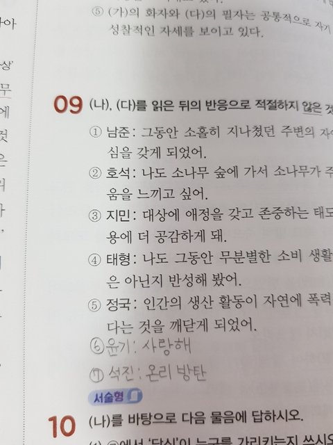 국어풀다가 애들 이름 나옴 ㅠㅠ